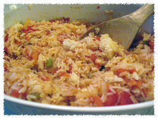 I just used ingredients I had on hand to make the sauce. I melted a Tbsp. of butter in a pan. I diced up 4 tomatoes, part of onion, and some green pepper. I added those to the pan. Then I added some garlic salt and pepper. Super simple and easily adjustable to what you have in your kitchen.